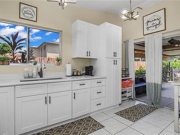 Welcome to 6484 Royal Woods Drive in the resort-style community of Royal Woods. Royal Woods is a picturesque community that is pet friendly and offers two heated pools, a clubhouse and lighted tennis/pickleball courts. The Association takes care of lawn care, exterior paint, roof, garage door, sewer, trash and exterior insurance. The handy south Fort Myers location is just off US 41 with a Publix shopping center two miles away, Lakes Park four miles away, Gulf Coast Town Center six miles away, and RSW airport ten miles away. The home features two bedrooms, two baths and an attached two car garage with laundry area with extra storage. The kitchen features newer stainless-steel appliances, solid surface counters and white cabinets. The kitchen, great room and primary bedroom all have sliders that open to an oversized screen porch. The property sustained damage and flooding from Hurricane Ian but has since been fully restored. According to the seller, this home and the neighboring property have been the only ones in the area that did not experience flooding during the past five years, including during Hurricane Irma and the two hurricanes in 2024.