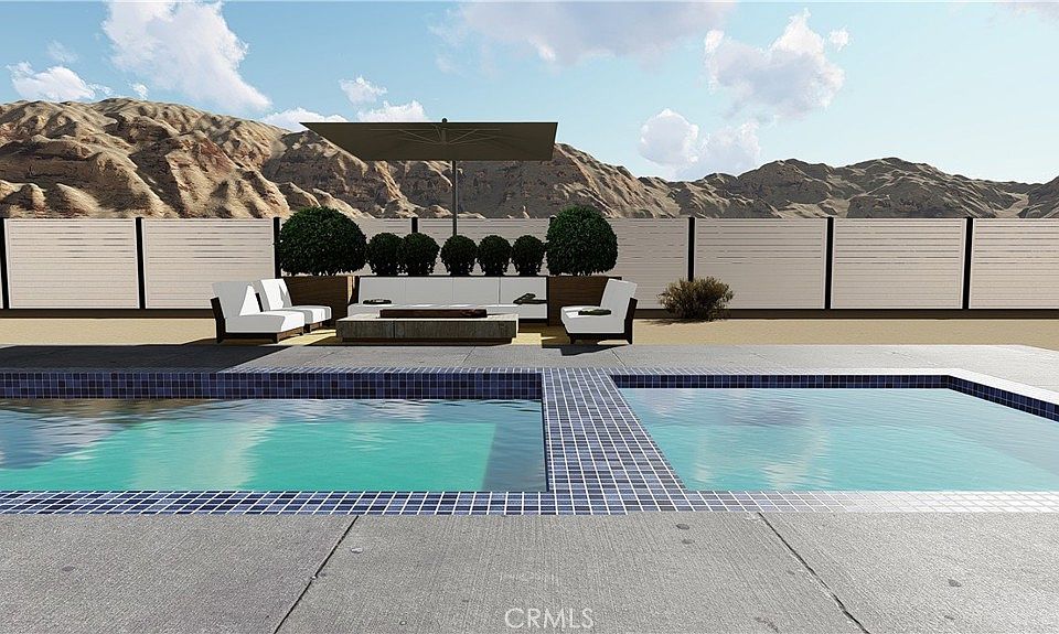 This land comes with a full set of construction ready plans for a rare, shovel-ready custom build luxury modern masterpiece pool house opportunity in Joshua Tree! The design has Mid-Century Modern elements and low, flat rooflines that are a signature look of world-famous California modern desert architecture pioneered in this region in the 1950s. Situated on a 1.38 acre lot the plans call for a 1,558 sf home with 2 beds and 2 baths. As an option, the listing broker, who is also an experienced and licensed general contractor, can construct this house completely turnkey (handling all construction) if requested by the buyer with a separate agreement. The current owner has already invested heavily in bringing the project to this advanced stage, covering the cost of surveying, civil engineering, grading plans, custom luxury architectural plans, heated swimming pool and spa plans, a percolation test, engineered septic plans, and the installation of a brand-new water supply meter. With plans in the final stages of county approval and utilities like water and electricity already on-site, you can start building almost immediately, saving valuable time and money. A key highlight is the property's location on a paved road, a feature that combines the best of both worlds: the rural, open serenity of the desert with effortless access for any type of vehicle, from SUVs to low-profile sports cars. Designed with short-term luxury rental in mind, the floor plan includes an oversized closet in the hallway in lieu of a garage for additional storage. A carport with a trellis and electric car charging is also included. As an option, a new garage can be added on the spacious lot, with possibly an ADU (Accessory Dwelling Unit) above as a second story. With a completed projected value estimated at $1.1M–$1.2M, and even greater potential with the addition of an ADU or other additional structures, this property offers incredible financial potential either as a forever home or a luxury vacation rental on Airbnb, Vrbo, and other vacation booking apps.