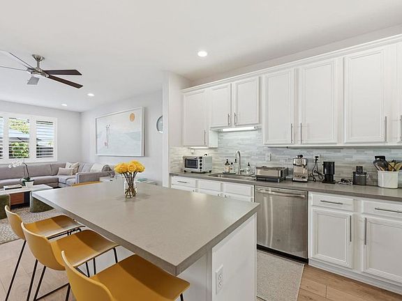 Discover this beautifully upgraded end-unit townhome in the heart of Aviara, offering the perfect blend of privacy, comfort, and modern coastal style. Tucked away with no neighbors behind, this 3-bedroom + office, 2.5-bath residence boasts 2,166 sq. ft of open-concept living—the largest floor plan in the Brindisi community. + the 2 car attached garage we all desire! Step inside to bright, airy interiors enhanced by LED recessed lighting, luxury vinyl plank flooring, and plantation shutters. The chef’s kitchen features sleek quartz countertops, stainless steel appliances, and a seamless flow into the dining and living areas—ideal for entertaining or everyday living. Upstairs, the remodeled primary suite feels like a private retreat with a spa-inspired bathroom showcasing a large walk-in shower and custom built-in shelving and drawers. Additional upgrades include granite countertops (from a single slab), MOEN brushed nickel fixtures, KOEHLER sinks, and remote-controlled ceiling fans in the kitchen/dining area and primary bedroom. Enjoy the outdoors in your private, low maintenance backyard—complete with lime and lemon trees that bear fruit year-round. A new fence (2024) and Rheem 50-gallon water heater (2021) add peace of mind. Located in a secure gated community with resort-style amenities including a pool and spa, this home offers easy access to top-rated Carlsbad schools, Aviara Community Park, Shopping and the area’s best beaches—sand just five minutes away. HOA membership includes discounts & benefits at nearby Park Hyatt Aviara! With thoughtful upgrades, a prime end-unit location, and designer touches throughout, this coastal gem truly checks all the boxes.
