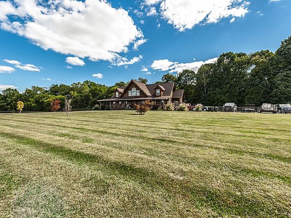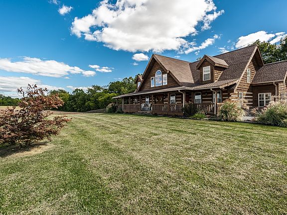 Picture Perfect Log Home With Country Views On 5+ Acres! Over 4,000 S.F., 4 BR's, 3 Full BA's, 1 Half BA, Hardwoods (zero carpet)! Living Room with Stacked Stone Wood-Burning Fireplace, Open Kitchen with Breakfast Area, Separate Laundry Room, Loft Area, Partially Finished Basement with lots of Storage Space & Man Cave (not included in SF). Owners Suite with *New* Renovated Bathroom w/ Tiled Shower, Claw-Foot Tub & Double Vanities! Office being used as Custom Walk-In Closet! Wraparound Covered Porch, Deck, Outdoor Fireplace, and Gorgeous Inground Pool (heated) with Slide and Waterfall! Additional Tiny House, RV Carport, 2 Car Carport, Chicken Coop, Goat or Small Animal Enclosure, & Multiple Storage Buildings Included! Gatlinburg-like Setting in the Backyard with Creek! Roof only 1 year old!