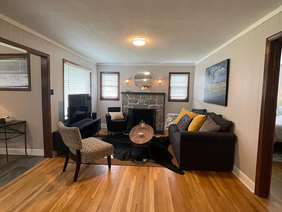 This adorable 2 bedroom 1 bath home has been remodeled and updated. Many upgrades including new light fixtures throughout, updated kitchen/appliances and bath, original hardwood floors. Kitchen has tile flooring and new cabinets and appliances. Rent includes lawn care service and internet.