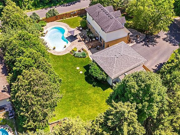 Welcome to your dream retreat, a private oasis on nearly half an acre in the charming and sought-after community of Killbride. Set on an expansive, beautifully landscaped lot, this 4-bedroom, 3-bathroom home offers the perfect blend of privacy, comfort, and functionality, ideal for families, multigenerational living, or anyone seeking a peaceful escape. From the moment you arrive, you'll be captivated by the mature trees, lush gardens, and impeccable stonework that frame this exceptional property. Step inside to a bright and airy main floor, featuring a welcoming entryway that opens into a stylish dining area and a well-appointed kitchen, complete with stainless steel appliances, breakfast bar, and walkout access to the backyard. Your private outdoor oasis awaits, perfect for entertaining or relaxing, with a stunning in-ground pool, professionally designed hardscaping, and peaceful garden views. Inside, unwind in the cozy family room with a gas fireplace, and enjoy the flexibility of a main-floor bedroom and a full 4-piece bathroom, perfect for guests, in-laws, or home office use. Upstairs, you'll find two oversized bedrooms both with lots of closet space and a luxurious 4-piece bathroom, offering a spa-like experience. The fully finished basement adds even more value with a spacious rec room, large fourth bedroom, 3-piece bath, laundry area, and ample storage. For hobbyists or those in need of serious storage, the oversized triple-car garage/workshop is heated and equipped with full electrical, a rare and valuable feature. All of this is perfectly situated within walking distance to Kilbride Public School, minutes from golf courses, trails, and a short drive to both Burlington and Milton, combining peaceful rural living with unbeatable convenience.