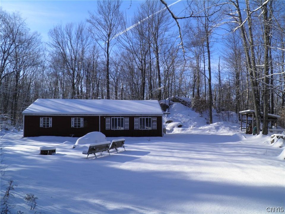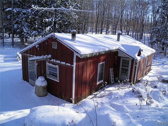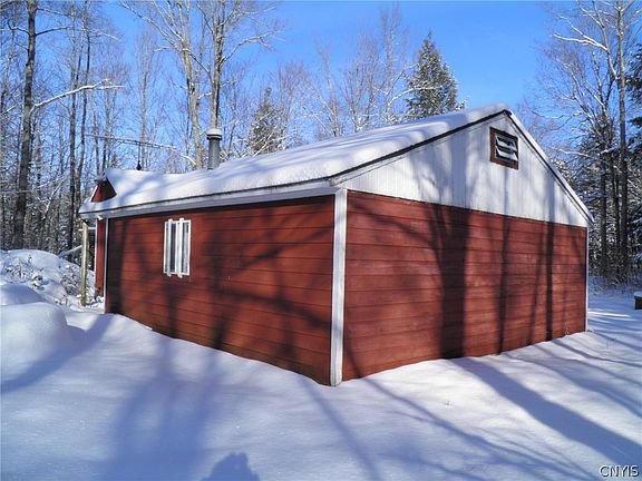 This one story, two room cabin on a 1.9-acre lot within the Independence River Wild Forest of the Adirondack Park. ~210’ of road frontage on the Partridgeville Road, which is maintained year ‘round and open to snowmobiles and ATV’s. Built in 1956, an insulated, wood framed and sided structure on a concrete slab, that is fully wired, without indoor plumbing. A shallow dug well located in the front yard supplies water via a hand pump in kitchen. An outhouse stands outback. A Fisher woodstove and 2 wall mounted propane units are the source of heat. Six bunk beds and a spacious living room provide ample space for large groups. An electric meter and breaker box are mounted on private utility pole on property, providing 100-amp service. Cable and telephone utilities are available roadside.