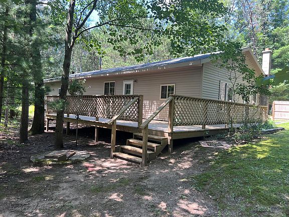 Recently remodeled 3-bedroom 1 bath home with attached 1 car garage. Home is approximately 1500 sq. feet on 1 +/- nicely wooded acres. Large living area with LP Heat, woodstove, dining area, updated kitchen with new stainless appliances & a handy pass through window to dining area. Main floor laundry, lots of windows for natural lighting, oversized back deck and attached 1 + car garage. Location is the ticket here as this property is centrally located amongst several of Irons inland lakes and just steps from the Little Manistee River. Ride your ORV's from your door and checkout the nearby Federal Land. This home is built around a 1974 single wide mobile that is enclosed and updated through the years.. Move in ready!
