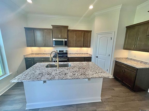 Awesome builder rate and a FREE refrigerator (restrictions apply)! The DEGAS III B in Pelican Crossing community offers a 4 bedroom, 3 full bathroom, open design. Upgrades for this home include luxury wood-look ceramic tile flooring, undermount cabinet lighting, and more! Features: double vanity, garden tub, separate shower, and walk-in closet in the primary suite, tray ceiling in the primary bedroom, en suite bathroom in bedroom 4, kitchen island, walk-in pantry, covered rear porch, recessed can lighting, undermount sinks, cabinet hardware throughout, framed mirrors in all bathrooms, smoke and carbon monoxide detectors, post tension slab, automatic garage door with 2 remotes, landscaping, architectural 30-year shingles, flood lights, and more! Energy Efficient Features: a tankless gas water heater, a kitchen appliance package with a gas range, low E tilt-in windows, and more!