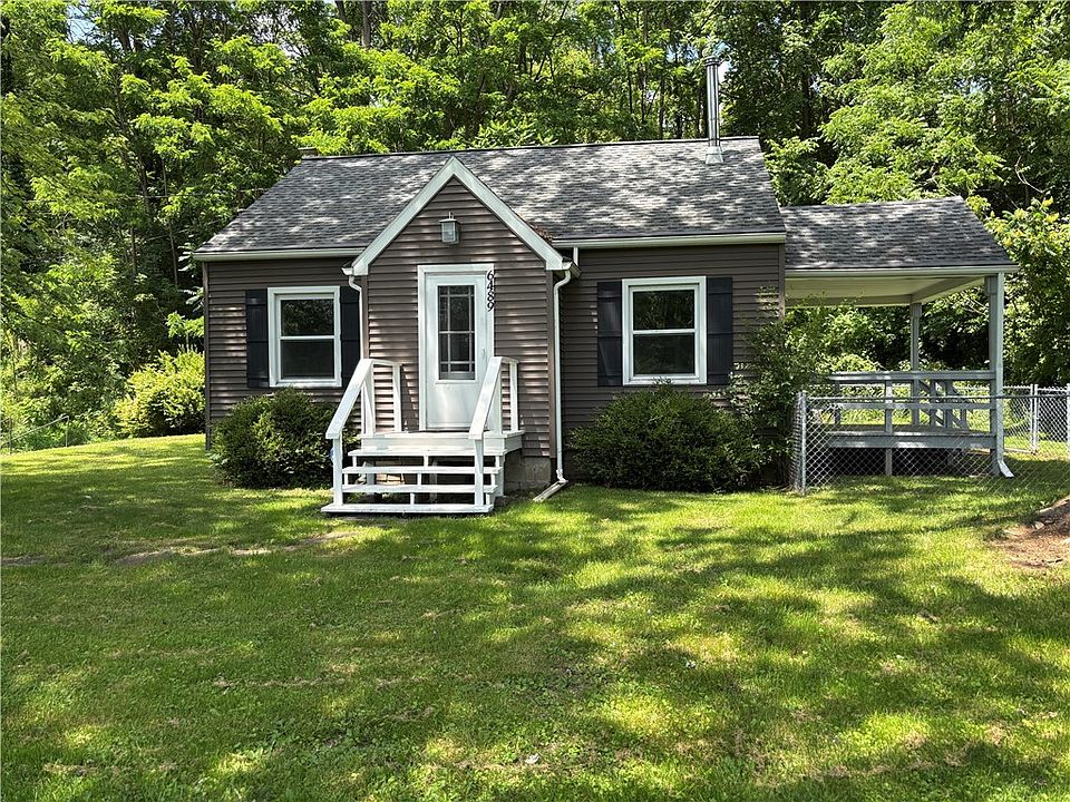 This cozy 2-bedroom, 1-bath home sits on a peaceful 0.40-acre country lot, offering just the right blend of rural charm and village convenience. Enjoy the updated features including a newer roof, vinyl siding, and a recently installed furnace. Step inside to find hardwood floors in the inviting living room and a beautifully remodeled bathroom. The spacious side deck is perfect for relaxing or entertaining. With public water and a comfortable layout, this well-maintained home is move-in ready and affordably priced at $125,000.