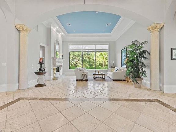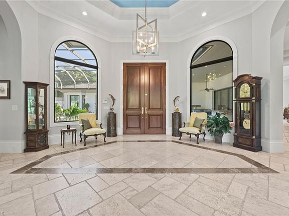 Luxury abounds at this exquisite estate home featuring 5 Bedrooms, 5 and 1/2 baths, formal and informal living spaces and includes a casita for guests and family. Supremely detailed from the coffered and tray ceilings, impact doors and windows to the custom flooring throughout. Enter the double front door to the grand foyer overlooking the living room anchored by a large fireplace with views beyond of luxurious outdoor spaces. Let your inner Chef delight in the well-designed kitchen complete with an island and additional prep sink to the abundant storage, gas range and exceptional granite countertop area. This space opens to the family area for informal gatherings with a slider to your outdoor kitchen and screened lanai where you will bask in serene and exquisitely private spaces with a heated, saltwater pool/spa, elevated seating area with fireplace for fabulous gatherings and entry to the private casita. 5 luxurious bedrooms, all en-suite, a den and another powder room all create an oasis for an unparalleled lifestyle. Incredibly located, central to "toes in the sand" beaches on the Gulf to downtown Naples for "Fun on Fifth", RSW airport and easy access to I-75.