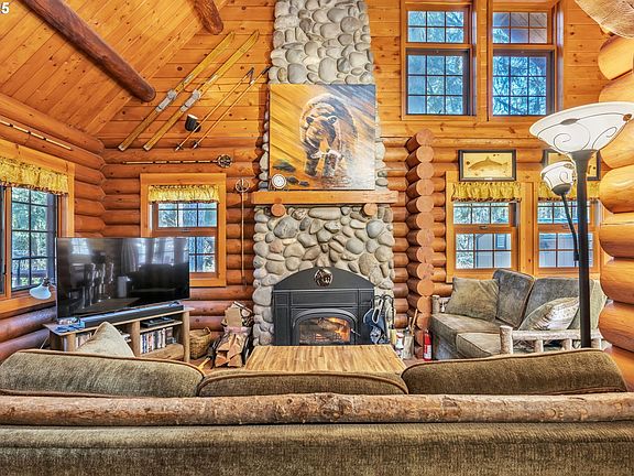 *Offer received- please reach out ASAP if your clients are interested* Everything You Could Want in a Dreamy Cabin Retreat! This stunning custom-built log cabin sits peacefully along the Sandy River, offering the perfect blend of rustic charm and modern comfort. With two spacious primary suites and three full bathrooms, there’s room for everyone to enjoy! Step into the warm and inviting living room, where vaulted ceilings and a two-story stone fireplace create a cozy atmosphere. The open kitchen overlooks the dining and living areas and offers ample space for all your cooking and entertaining needs. Upstairs, you'll discover a massive primary suite complete with a luxurious full bath featuring double sinks, a walk-in shower, and a jetted tub nestled beside a window so you can soak and unwind while surrounded by treetop views. Just outside the suite, a flex space awaits perfect for a reading nook, kids’ play area, game room, or whatever your imagination desires. Don't forget to find the secret room hidden behind the sliding bookcase! On the main level, a second primary suite offers its own stone fireplace, a generous ensuite bath with double vanities, and a large tiled shower. The third bedroom connects to both a full bathroom and the expansive back deck, where a hot tub hookup awaits for your future spa-like evenings. Hardwood floors throughout, and the outdoor living is just as impressive with a huge covered back deck and welcoming front porch, ideal for year-round enjoyment. Freshly stained this Summer, the outside should be good to go for about 20 years! All furnishings are negotiable, including new tools in shed. Located in the desirable TimRim community, you’ll enjoy access to exclusive amenities like a clubhouse, swimming pool, basketball and tennis courts, and more. This is mountain living at its finest—private, peaceful, and packed with charm. Don’t miss your chance to own this one-of-a-kind cabin escape!