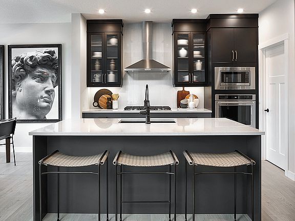 Our beautiful Savona 28 show home is now for sale! The intriguing open to above living room creates an inviting space, perfect for entertaining. The main floor features a well-sized kitchen that connects to a dining room and great room; the perfect setting for staying connected to family and friends while entertaining, or cooking the day's meals. The large sliding doors provide access to a back deck that's ideal for grilling and relaxing on those hot summer days, while a flex room adjacent to the kitchen can be used however you please. The upper floor is smartly designed to maximize space. Its surprisingly spacious layout includes a large bonus room at the top of the stairs that's surrounded by three bedrooms. The owner's suite, complete with walk-in closet and ensuite, exudes elegance and ensures parents have a private space to themselves, while the other two bedrooms provide a retreat for the kids that is appropriately separate, and features private access to their own full bath and upstairs laundry. This home features: Main - Mudroom has deacons bench that leads through upgraded pantry with MDF shelving and quick access into the upgraded gourmet kitchen - Main floor powder comes with vanity - Kitchen is open to dining and great room which boasts loads of natural light with its two storey open to below ceiling height which has added windows being a corner lot - Full width deck Upper - Main bath has two sinks and a pocket door as well as a fully tiled bath with n