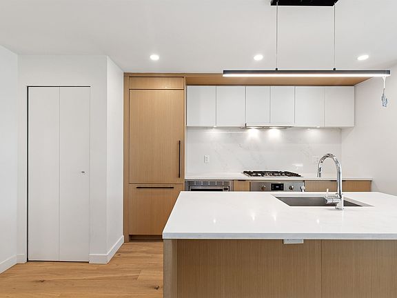 Welcome to The Morrison - boutique West Coast living at its finest! This garden-level 1 bed+ den shines with two expansive patios (230+ sq. ft.) including natural gas hookups, perfect for entertaining or relaxing outdoors. Inside, enjoy a luxury kitchen with Bosch appliances, quartz island with countertops, and custom cabinetry, all flowing into a bright open-plan living space with floor-to-ceiling windows. Wide-plank oak floors, radiant in-floor heating, upgraded dual zone Air Conditioning throughout highlight the home's high-end quality. The oversized den with sliding doors easily doubles as a 2nd bedroom or office. Steps to Moodyville Park, Spirit Trail, and all the Lower Lonsdale amenities. Don't miss this incredible garden level property!