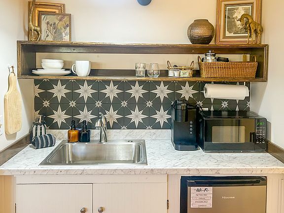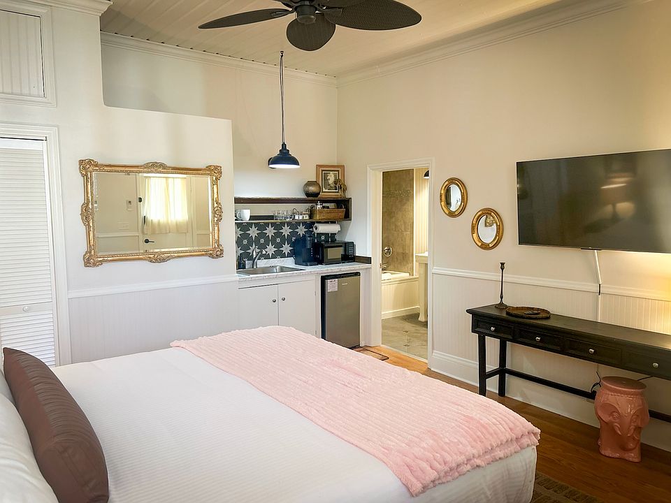 STEPS TO ALL ASHLAND HAS TO OFFER. 1 block to grocery store 3 blocks to all the downtown restaurants 6 blocks to Ashland's Plaza Center BIKE & HIKE (ride from your front door to the trails) Plush KING bed ACCOMMODATIONS Single level, 1st floor Relax on the large front porch with outdoor dining area. Private outdoor common lounge , common pavilion, LAUNDRY HIGH SPEED 5g Internet 50" SMART TV Netflix Sparkling full bathroom, with large jetted tub Coffee bar w/ Keurig coffee maker Kitchenette Swank Suites is a boutique collection of 9 newly renovated large Hotel Suites (summer of 2024). During this off season we are offering a few of the larger suites as mid-term furnished rentals including all utilities. They will be available from November 1st until March 1st to stay and play in the beautiful downtown area. The suites would best be suited for one person and possibly a small quiet pet. Note that the jetted tub in this unit is quite large, and requires a large step to enter, so it may not be suitable for someone with limited mobility. Other units also available. Please feel free to inquire. All utilities included including highest speed internet available. Premium furniture and living space. $150 non refundable cleaning fee