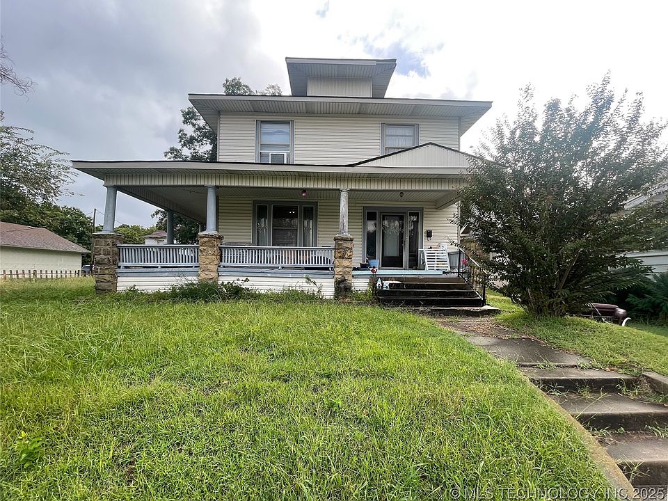 This large home offers 4 bedrooms, 1 & 1/2 /bathrooms, a large living area, a formal dining area, and a large detached 2 car garage! The exterior has vinyl siding, a cute wrap-around porch, and a newer roof! Beautiful hardwood floors throughout and awesome trim and woodwork. This home needs a little TLC, and it's ready to go!