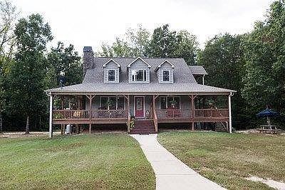 This private estate offers hardwood floors throughout the home except in the bathrooms which are ceramic tile, granite countertops in all bathrooms & the kitchen as well as custom, locally built artisan made cabinets. The privacy of this home allows you to enjoy the natural lighting, viewing all that nature has to offer while feeling totally secluded in a cabin-like setting. The large master suite offers 3 walk-in closets, private porch overlooking the tranquil wooded setting & private master bathroom with claw-foot tub with separate shower. The kitchen is built for the efficient chef that enjoys cooking and having everything needed within close proximity while enjoying the advantage of a large breakfast area overlooking nature through the abundance of windows this home has to offer of simply eat your meal at the bar. You may enjoy sitting outside on the 8 ft. wrap around porch that offers 8 ceiling fans while drinking your morning coffee or reading before bed. Each additional bedroom has large closets while sharing a large bathroom. Don't overlook all of the storage space, additional closets and huge laundry room on the main level. The partially finished basement offers an additional full bath, rec or bonus room, storage room, workshop and garage all within steps off the hot tub. From the concrete poured walls on three sides in the basement, closer than required stud placement as well as the attention to detail this home is built to last! This estate offers fenced area for livestock, 6 stall barn with electricity & water. There is an unfinished loft. (2) 5ftx10Ft concrete dog kennels, 2 bridges over the creek, a natural spring for possible pond site as well as an abundance of wildlife for the outdoor enthusiast are some of the advantages of this property!