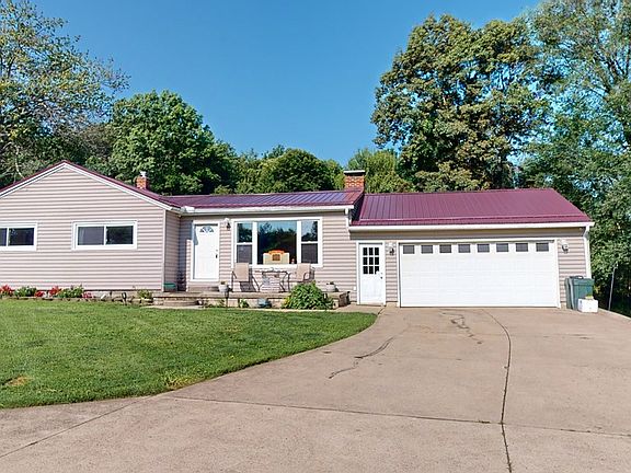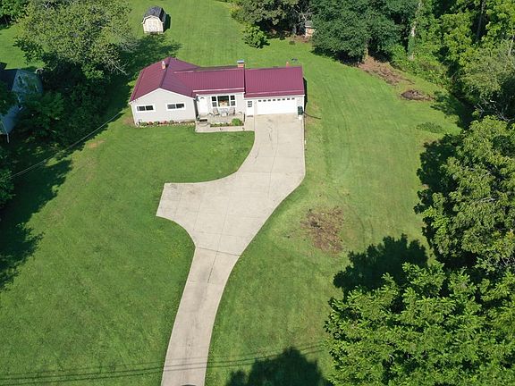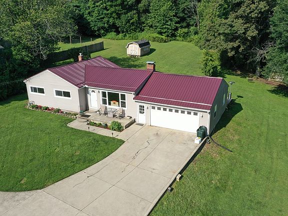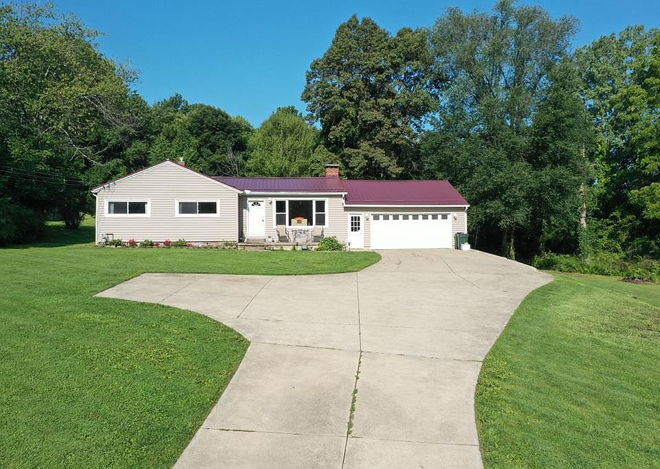 On just over an acre of land this beautifully updated ranch-style home has everything you're looking for. Sit on the back patio & enjoy the secluded backyard while listening to water flow through the picturesque creek. Exterior has been completely updated with a metal roof, windows, concrete driveway & vinyl siding. Inside you will find an abundance of natural lighting with a large living room, plentiful counter space & spacious closets! Interior features new appliances, PVC/vinyl flooring, carpet in the bedrooms & fresh paint throughout. New well pump & tank installed in 2022. Equipped with a spacious whirlpool bathtub & walk-in shower. 2-Car attached garage has been recently insulated to enjoy all the heat from the wood burning stove. Downstairs you will find an additional wood burning fireplace for gatherings & cold winter nights. 2 Sheds. No contract. Annke Security cameras stay. Country feel with easy access to I-71 & SR 30, restaurants & shopping. This property is a must see!