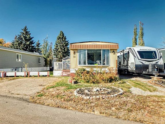 Affordable and Steps from Downtown Airdrie – Welcome home! Discover great value in this updated mobile home located just a short stroll from the heart of downtown Airdrie. Offering over 900 square feet of living space, this charming residence is an excellent alternative to condo living—without sacrificing space, privacy, or outdoor enjoyment. Inside you’ll find a bright and welcoming layout featuring three generously sized bedrooms, including a spacious primary with a separate door to the bathroom. Whether you need extra space for family, home office, guest room, or playroom, the two additional bedrooms offer versatile options to suit your lifestyle. A beautifully renovated 5-piece main bathroom includes your laundry for added convenience. The kitchen and living room provide an ideal setting for both everyday living and entertaining. Updated vinyl plank flooring (2022) and fresh interior paint (2025) give the home a modern feel, while large windows let in plenty of natural light. Recent upgrades also include a new roof (2025), bathroom improvements (2022), and a new deck (2022)—all the hard work has been done for you! Step outside and enjoy the generously sized yard, perfect for relaxing, gardening, or entertaining. The deck is ideal for summer barbecues, and there’s room to park two vehicles right on the lot. Situated just off bustling Main Street, this home offers unbeatable walkability to downtown Airdrie’s many amenities including grocery stores, cafes, restaurants, and the brand-new public library. Nature lovers and families will appreciate being steps from Fletcher Park and close to three local schools. With a low monthly pad fee that covers garbage/recycling, water/sewer, snow removal, and park management, this is a fantastic opportunity for first-time buyers, to downsize, or to invest in. Don’t miss your chance to own this affordable and move-in-ready home in one of Airdrie’s most convenient locations. Schedule your showing today!