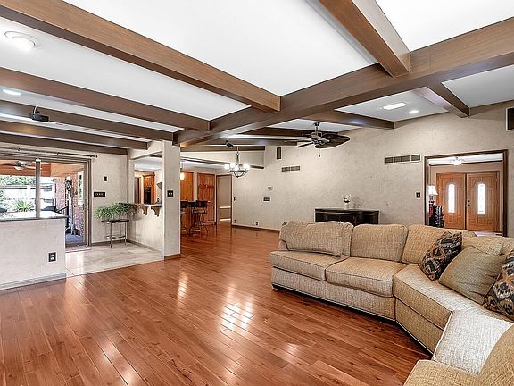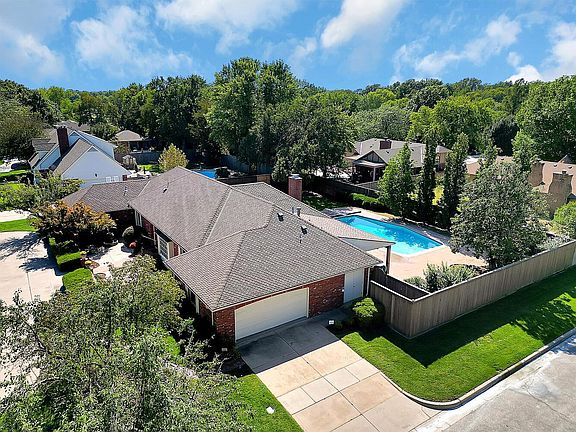 This one-of-a-kind home in the highly sought-after Woodlawn East neighborhood sits on a beautifully landscaped corner lot, complete with a circle drive, tranquil fountains, and a private courtyard. Inside, you'll find a unique and spacious floorplan filled with thoughtful architectural touches, including gorgeous beamed ceilings and Acacia wood flooring throughout the main living areas. The foyer, wet-bar, and butler’s pantry are elegantly finished with travertine tile, adding to the home’s refined style. The versatile living room can serve as a cozy library or a private home office. A formal dining room offers the perfect space for entertaining, while the wet-bar, covered patio, and in-ground pool create an ideal setting for hosting guests outdoors. The expansive kitchen is a chef’s dream, featuring a gas range, double ovens, Sub-Zero refrigerator, granite countertops, an eating bar and rich knotty alder wood cabinetry. An additional butler’s pantry provides exceptional storage and prep space. Relax in the oversized family room with a fireplace, built-in cabinetry, and surround sound wiring—perfect for movie nights or casual gatherings. The spacious primary suite boasts a remodeled in-suite bath with a luxurious shower room, separate soaking tub, and laundry located directly in the walk-in closet for added convenience. Additional highlights include: A large basement rec room with sound-buffering ceiling, Custom shutters, Impact-resistant roof, Energy-efficient windows and exterior doors, Jack & Jill bath and 3 additional bedrooms on the main floor, Walk-in closets, Security system, Sprinkler system and lush landscaping throughout. This is more than just a home! It's a lifestyle opportunity in one of the area's most desirable communities. Don’t miss your chance to make this exceptional property your own!