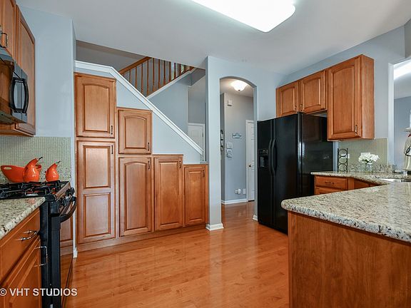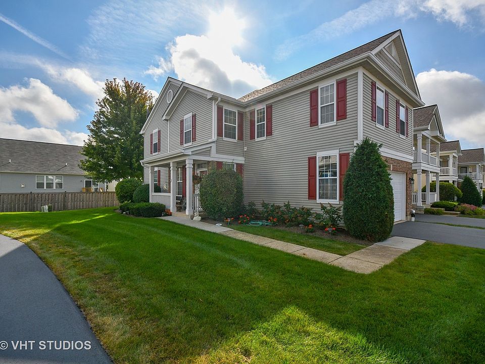 Villa (Duplex,END UNIT)Dunhill model offers 2100 sq ft of upgrades, + finished basement! Open layout, abundant natural light, w hardwood & custom blinds thru first floor, Great Room open to kitchen w new granite counters! Freshly painted Great Rm & Dining Rm open to new unilock paver patio--big enough for a crowd. Kitchen w new granite, new stainless sink & faucet, upgraded 42" maple cabinets, backsplash, extended breakfast bar. Large loft perfect for TV room/den, 2nd floor laundry room. Huge (27x15) vaulted master w sitting area plus Awesome walk-in closet w custom organizer system. Lux bath w/skylight, dual vanity, sep shower, whirlpool tub. Two more vaulted bedrooms with ceiling fans,+ bathroom. Rec Room in finished basement with bar for entertaining & space perfect for home theater;also storage & work room. Attached 2 car garage with drywall & epoxy flooring. Private cul-de-sac location in Fisher Farm-- near shopping, restaurants, hospital, elem school & more. Metra train in Geneva