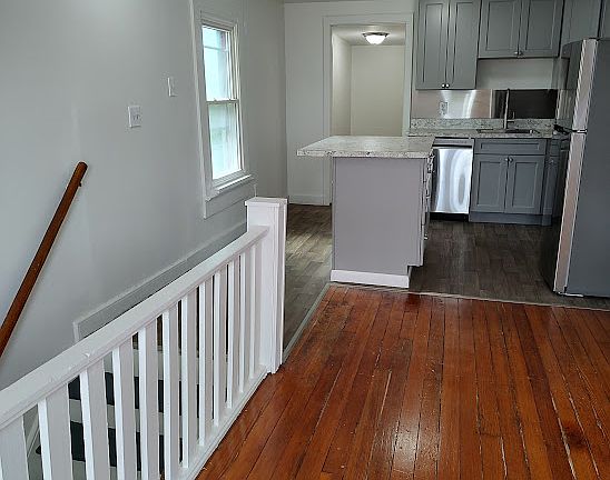 Apartment for Rent: Recently Refurbished 1-Bedroom 1-Bathroom Upper Unit in Liverpool, NY. updated kitchen cabinets and stainless-steel appliances including, dishwasher, electric stove and refrigerator. Bathroom is completely refurbished with contemporary fixtures and a fresh, clean design. This apartment also includes a convenient stacked washer and dryer. The space is bright with natural light and has beautiful hard wood floors.