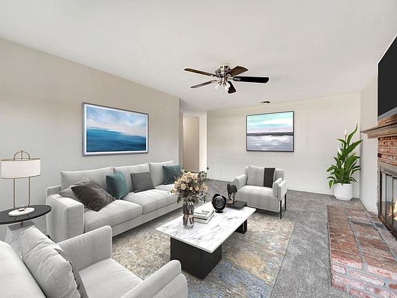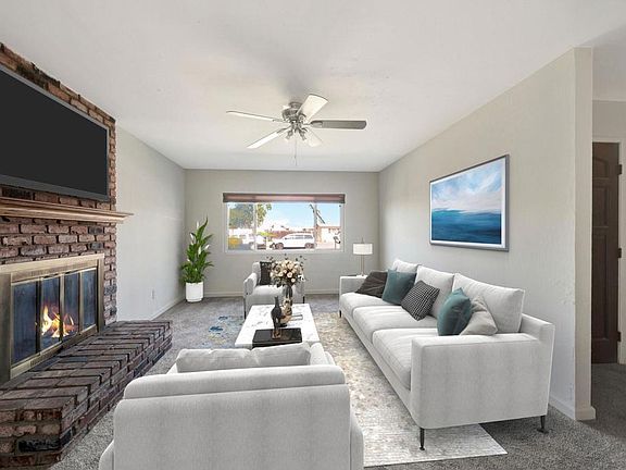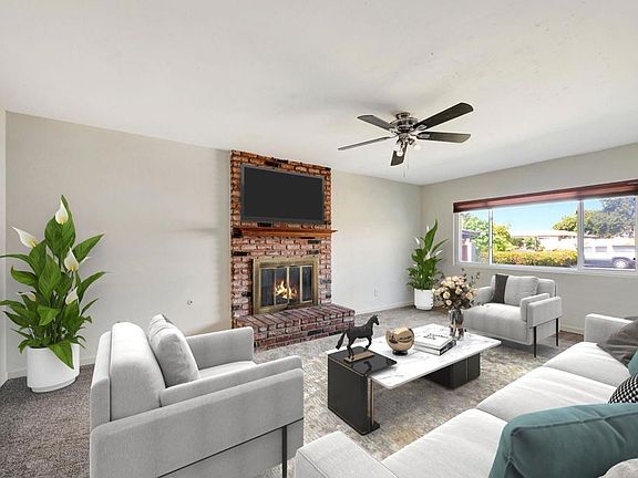 SOLAR - OWNED. PLEASE NOTE - photos are virtually staged in living room, Main BR, & CA Room at back of property. CA room measuring ~ 480 SqFt added at back of home with 9 double paned windows overlooking large backyard. 1525 SqFt per Assessor but measured SqFt ~ 2000 SqFt. - SEE FLOOR PLANS with measurements. Kitchen & both Bathrooms updated. Quartz countertops, new white shaker-style cabinets with easy close cabinet doors & drawers which feature large pullout drawers for easy access of large items or small appliances. SS Kitchen appliances. New flooring throughout. Newer A/C & furnace ~ 6 years ago. 7 Ceiling fans - all Bedrooms & Livingroom plus two in CA Room (which also features canned lighting). Fireplace in living room, Alley access - 7500 SF, flat lot. List Price adjusted 10/22/2024