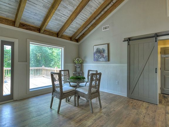 Rare in town cottage renovated from the outside in and ground up. Walk on the sidewalk to the quaint town of Ellijay with restaurants and shops. This amazing property features 3/4 wrap around deck, Mountain View and a few steps from the new Ellijay Entertainment Center which will feature retail, restaurants and an entertainment venue! The living area is light and bright with sleeping loft. Fabulous and spacious kitchen with lots of cabinets, granite and new SS appliances! The bath has a beautiful tile walk in shower, is stubbed for a tub and has a laundry nook with new washer and dryer. Check out this beauty!