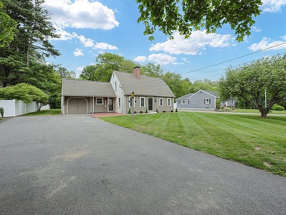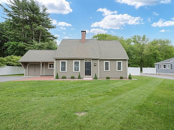 Welcome Home To 649 S Main St! This Post and Beam "Bow House" replica has been completely remodeled and offers 4 bedrms with 2 full baths nestled on a large private 1.5 acre lot with attached 25ft deep one car garage! Step inside & fall in love w/ this beautiful cape styled home featuring a gorgeous brand new kitchen w/ quartz countertops, SS appliances, JSI soft-close cabinetry, island/breakfast bar & dining area, front to back living room w/ french doors, wood fireplace w/ custom built-ins, cathedral ceilings, refinished wide pine flooring and slider to new stone patio overlooking fenced-in back yard w/ gazebo. Featuring 2 bedrms on 1st floor and 2 bedrms on 2nd floor w/ a full bath on each level! Other updates include remodeled baths, plumbing, partially finished basement perfect for home office, family room, home gym and new shed w/ electric! Natural gas heating, Harvey vinyl windows, cozy fireplace in primary bedroom, town water/sewer & centrally located!
