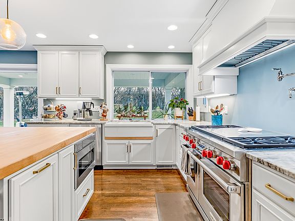 FULLY UPDATED Suncrest Ranch on Cu-de-sac w/ Heated Salt-Water POOL! Refinished hardwood floors throughout main-level. High-end Kitchen includes entry-pantry, SS 36” Wolf range w/ cooktop + Subzero refrigerator/freezer, large butcher block island w/ bar, marble counters + custom cabinets. Pass through window offers endless entertaining dreams onto spacious covered patio! Open Dining Room looks to side Pool patio, with sitting area built in. Living Room centers on cozy gas fireplace + leads to Sunroom w/ double-entry (optional space for main-floor entry here?). Yard space is FLAT + very useable! 24'x31’ fiberglass pool has splash deck + auto-cover! Primary Suite Retreat has high vaulted ceiling + en-suite of your dreams: heated floors, huge marble tiled/glass door double-shower, double sinks, soaker tub, + entry closet w/ custom lighted shelves + rods! Laundry + (3) other BRs on main-floor, one with full bathroom en-suite. Finished basement has flexible space + 5th BR w/ full bathroom en-suite. 2nd entrance on lower-level offers lots of options! Newer Everything, zoned HVAC, large 2-stall garage w/ storage, outdoor bathroom + storage for Pool. PRIME location is so close to hospitals + so much Morgantown has to offer… SEE NOW!