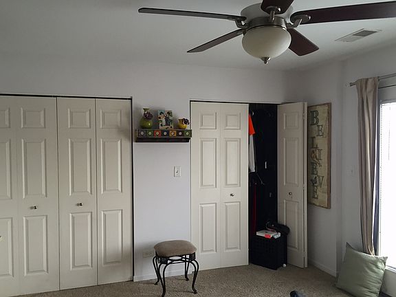 Large primary bedroom with dual closets with closet organizers. Large top floor OPEN back deck off of primary bedroom. The deck has an amazing skyline view.