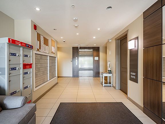 A THREE BEDROOM CONDO AT WATERSTONE??? It doesn't happen often but this gem is waiting for it's happy new owners! Recently painted & move in ready, this corner unit has luxury finishes like white shaker cabinets, full slab granite counter tops, HUGE kitchen island w loads of storage plus, wide-plank vinyl flooring, full-sized stainless steel appliances, on-demand hot water tap & a MASSIVE WRAP-AROUND patio that faces the greenbelt. Included are TWO side-by-side parking stalls with with TWO private mini garages. Enjoy exclusive access to Waterstone’s resort-style amenities: indoor pool, fitness centre, 17-seat theatre, sauna, chef’s kitchen, and more!! This home is just steps to Willowbrook Mall, shops, dining and future Skytrain—this one checks all the boxes. Come see for yourself!