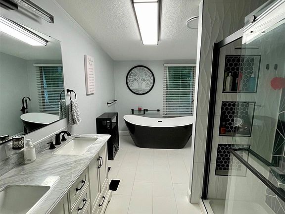Beautifully renovated home nestled back at the end of a cul de sac. Enjoy 1.6 acres of peace and quiet tucked back in a quiet sub division with no thru traffic! Elegantly updated Kitchen with spacious layout, Stainless appliances and quartz countertops. The master bedroom includes a large walk in closet and private bathroom. The master bath is breathtaking with a freestanding tub and walk in shower. Enjoy mother nature on the covered deck or wide trail that goes down by the creek and around the entire property. Perfect for riding go kart or four wheelers. There is plenty of space to store all of your toys in the 900sq ft/3car garage with very strong concrete to support a vehicle lift in the future! Perfect for enjoying the quiet life with every amenity desired.