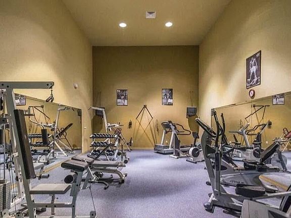 Resort-style amenities such as a large heated pool & spa, fitness center, tennis courts, clubhouse/social space.
