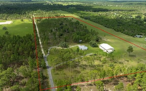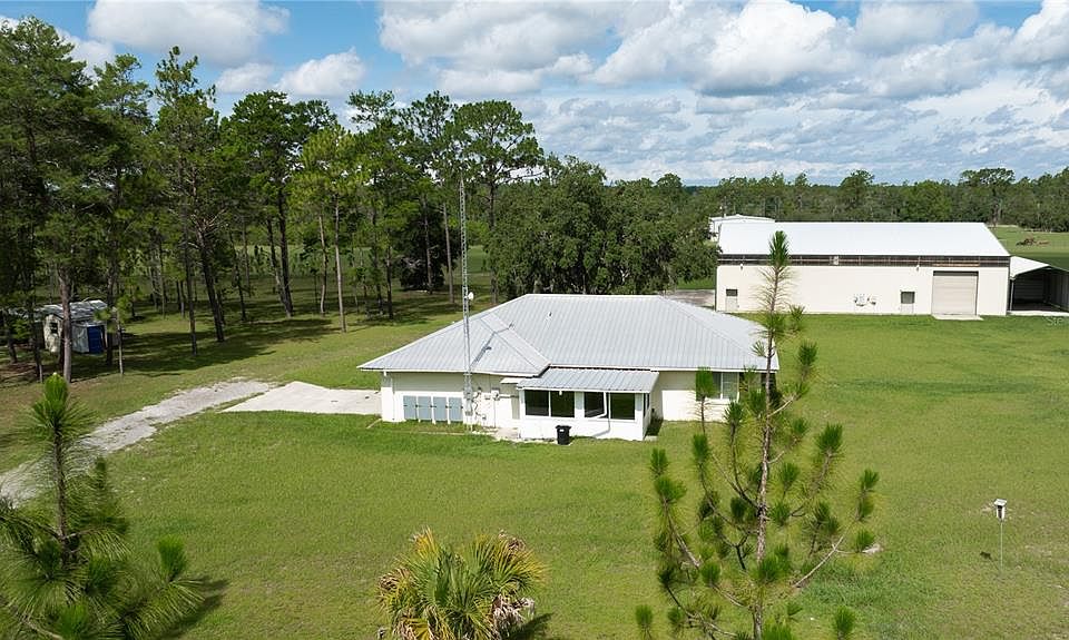 One or more photo(s) has been virtually staged. Nestled in the Wings Field subdivision of Morriston, this 25-acre estate with Airstrip access offers a unique blend of tranquility, functionality, and freedom for aviation enthusiasts, outdoor lovers, or those seeking space and privacy. This 3-bedroom, 2-bath single-family home features an open-concept layout with a combined living and dining area, a spacious enclosed Florida room, and 1,276 sq ft of heated living space. Built in 2009 with a durable metal roof, central air, and thoughtful design, it’s move-in ready and full of possibilities. The property is designed for both comfort and utility with a 2-car garage, RV carport, boat parking, shed with carport, and an airplane hangar (80x60)complete with a barn apartment—featuring a bedroom, small kitchenette and full bath with a walk-in shower. All tools and equipment in the hangar are included to convey with the sale. The land features planted pines and beautiful timber, offering natural beauty and long-term investment potential. Energy efficiency is also a plus, thanks to the solar power system with two ground-mounted arrays and a total of 22 panels—10 powering the main home and 12 powering the hangar. Enjoy privacy, open skies, and the freedom of a private airstrip, all while being conveniently located near Williston and Ocala.