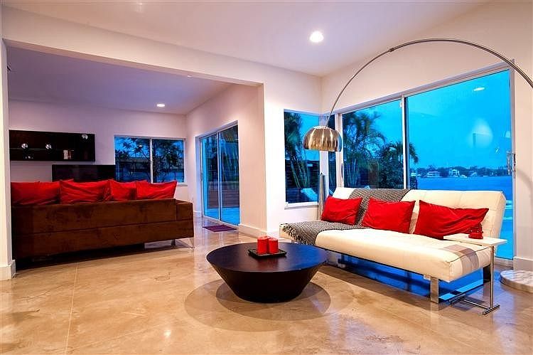 5 bedroom 4.5 bathroom, private pool sleeps 10 Charming and contemporary chic home with bay view on the desirable east end of Venetian Island. Family friendly setting 5 bedrooms, 4.5 bath. Large smooth lines and open living room with walls of glass doors opening to a pool, dock, and bay views. Gourmet kitchen with stainless steel appliances, laundry room, and white slip covered sofas. First and second floor master suites, king beds with Egyptian cotton linens and Jacuzzi tub. Two flat screen TVs and internet access. Walking distance to restaurants, Lincoln Road, and the beach.