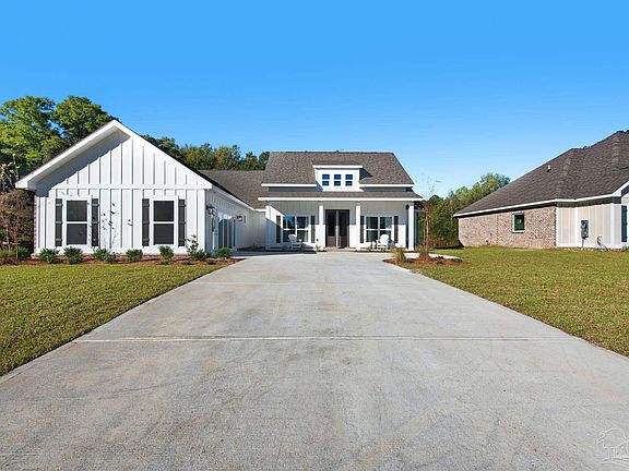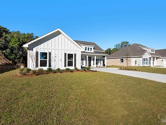 Welcome to Ledgestone in Beulah, a community that combines tranquility with convenience, just a short drive from Pensacola. The Pecan plan offers 2,527 square feet of thoughtfully designed living space, featuring four spacious bedrooms and three stylish bathrooms, ensuring comfort and functionality for family and guests. The kitchen is the heart of the home, complete with beautiful cabinetry, elegant countertops, a spacious island, a gas cooktop with a designer hood, a built-in microwave, and a large walk-in pantry. Adjacent to the kitchen, the breakfast room overlooks the expansive covered patio and backyard, perfect for outdoor entertaining. The primary bedroom is a tranquil retreat with a luxurious ensuite bathroom, featuring a soaking tub and a modern zero-entry shower, along with an oversized closet for ample storage. Three additional guest bedrooms, each with walk-in closets, and two conveniently located full bathrooms complete this stunning home.