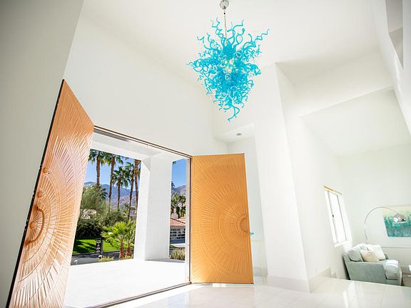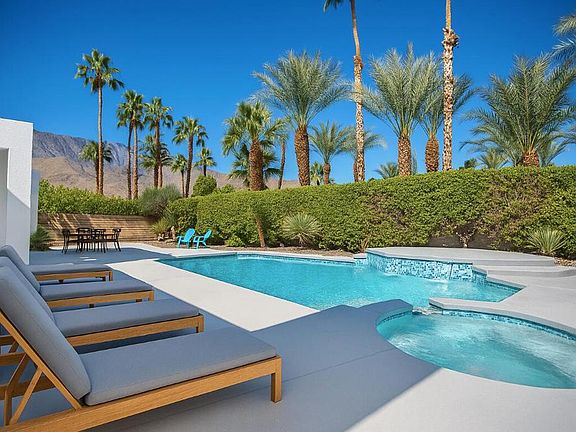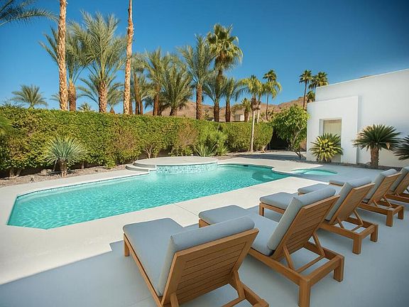 Like LIVING LARGE? Spanning 5,528 sq.ft. w/ 4 BDRMS/6 BA on nearly a half-acre, this light, & white home features Polished white marble floors, high voluminous ceilings, fresh interior/exterior white paint, Newer roof coating 2023, full-length covered tiled patio w/fans and $100K of recent renovations, Brand NEW Pool & Spa w/Kool deck hardscape in the entire yard surrounded by fragrant Mature Palmeria, Sego, Palm Trees & private stately hedge. New front stairs, Double door GRAND entry showcases turquoise hand-blown glass chandelier reminiscent of Chihuly. Offering gorgeous MTN VIEWS from sliding glass doors & windows thru out. Solid core doors, hallway is the Entire Length of the house perfect for large scale art. Custom built by known Wendell Veith AIA. Need Space??Living rm w/fireplace, Formal dining room seats 12 guests, happy, bright Breakfast rm & Great room w/bar & stone fireplace Plus office/Flex rm too. Luxurious primary suite with dual baths and closets, marble fireplace, and plantation shutters. Granite kitchen w/island can dazzle with new appliances. Big is better! Tons & tons of storage w/ walk in closets in all suites. Two car tiled garage, & Great separation of primary & secondary suites. Gated Parc Andreas has tennis & pickle ball courts & a stones throw to 2 World Renown Indian Canyons Golf courses, North & South & the Incredible Indian Canyons! Andreas Hills is the ''Bel Air'' of PS. Elevated w/rolling hills, Peaceful, Tranquil & a very special neighborhood! Its THE #1 LOCATION in PS! Surrounded by magnificent natural Flora, cactus & mother nature, this is the place to live life!