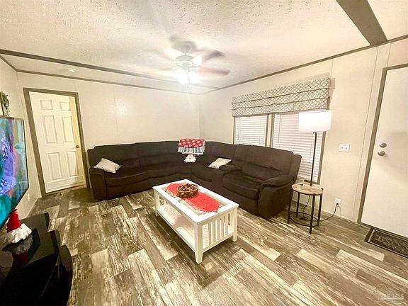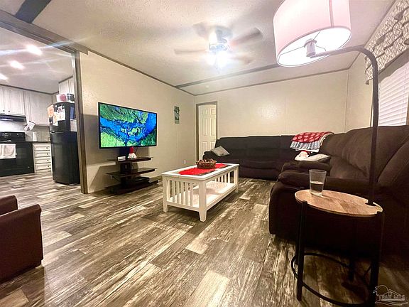 Serene location close to the Florida/Alabama Line! This nearly new manufactured home is an exceptional find! It features 4 bedrooms and 2 baths and provides a semi-open layout with a split floorplan. This home feels spacious and airy inside and is private with large trees on the outside. The finishes are fresh and up to date and give a farmhouse feel. The eat-in kitchen offers a large island, tons of storage, laminate countertops and luxury vinyl floors. Immediately off the kitchen is a mudroom/laundry with an oversized pantry area. The Master Suite is spacious and overlooks the front yard. The master bath has a spa feel with an incredible soaker tub with a large deck, separate shower, double vanity and oversized walk-in closet. On the other side of the home are three additional bedrooms and a guest bath. With 2.25 acres there is plenty of room to add a barn or have a small mini-farm. This home has so much to offer and is move-in ready!