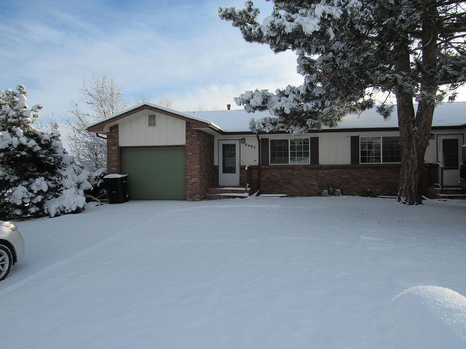 Half of a two family house across the street from Campbell Elementary School and Oak Park in Arvada. The first floor has a living room with wood burning fire place, eat-in kitchen, master bedroom, bath with tub & linen closet, second bedroom, coat closet, and slider to deck. East side of house has a 4' wide deck across its entire length. The lower level has two bedrooms, a bath with tub, utility room with washer and dryer and family room with glass slider door to the yard. The two downstairs bedrooms have new carpet. The family room & downstairs bath have new vinyl tile floors. There is a one car garage. The back yard has a cedar fence and storage shed. It has gas forced air heat and hot water, central air conditioning, electric stove, microwave, dishwasher, disposal, refrigerator, washer & dryer. The bedrooms are carpeted and other rooms have vinyl or engineered wood floors. The total size is over 1,700 square feet.
