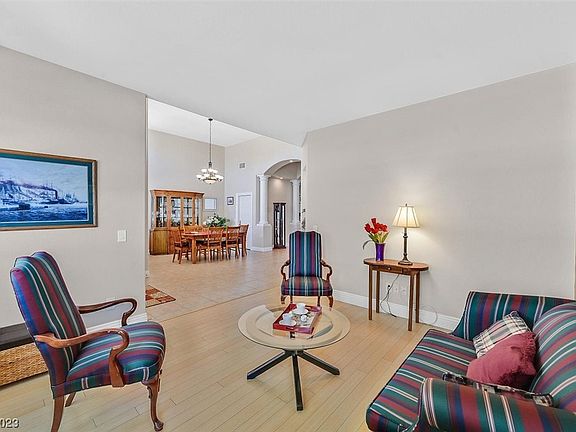 Wow! Amazing , Beautifully maintained, upgraded Single Story home located on a Cul-de-Sac, over 1/4 acre corner lot in Northwest Las Vegas. Inground Pool with beach entry & Spa. Massive covered patio with two other covered patios. RV Gate. 3 car garage with epoxied floor & cabinets. Paid off Solar Electric installed in 2018! Hospital Grade Carrier/ Bryant Air Purification system and new HVAC installed in 2020! Generac Generator. Tankless Water Heater. Open Floorplan with Vaulted Ceilings & Chefs Kitchen perfect for entertaining. Large breakfast bar & Island with Corian style counters. Gas cooktop. Water Purification system & water softener. Bamboo, hardwood & tile flooring throughout! 4 total bedrooms, & 4 full baths. Separate Family & Living Room. Gas Fireplace in Family room. Primary bath separate tub & shower , double sinks, make up table, + large walk in closet. Separate Den/Office & Dining room. Beautifully maintained landscaping! This home will not disappoint!