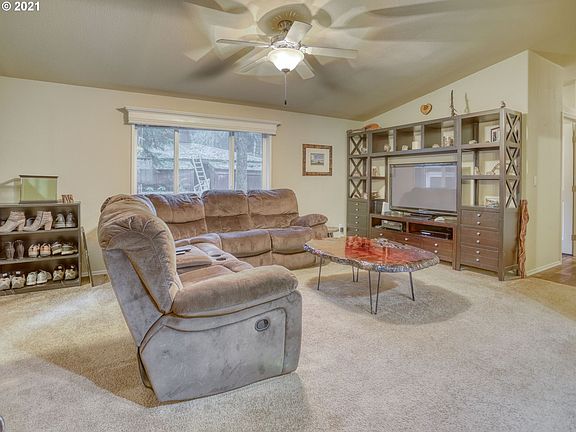 Wonderful turn key ready manufactured home built in 2017 on large lot in desirable Timberline Rim neighborhood.Walk into a warm & cozy living room with vaulted ceilings.Open floor plan to kitchen and dining.Well kept carpet and flooring. Everything here is less that 5 years old! Home built with upgraded insulation installed.NE corner reinforced for wood stove installation. Newer 200 sq ft shed.RV parking.Den cud convert to 3rd BR(no closet).HOA includes water,rec rm,pool. Min to Mt Hood Rec area