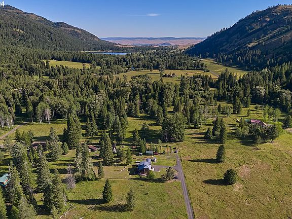 Sit on the deck and enjoy the sound of birds chirping, the Lostine River running and the lovely canyon views! This home was custom built in 2005 and is situated on a one-acre lot. The house is 1,804/ft. with two bedrooms, one on which is on the main floor, two full bathrooms and an open kitchen/dining/living room. The living room has a beautiful propane fireplace and the kitchen has gorgeous hickory cabinets with all the appliances included. There is a separate laundry & utility room on the main floor. Upstairs has a family room with a kitchenette and a door leading out to a covered patio. The large windows takes in the gorgeous mountain views throughout the home. The doors are extra wide to allow for wheelchair access. The house has Hardi plank cement siding and a metal roof. The 192 sq.ft shop has concrete floors and lots of shelving, 30 amp electric, and a RV plug under covered car-port. There is a covered front porch to enjoy the morning sun and a South facing deck. A propane fireplace in the back yard makes for nice campfires. Many beautiful flower beds. A small shed in the back for your garden tools. Private 50 gal/min well and septic. The community is a Firewise Community. Most of the furniture is included in the sale, ask for a list.
