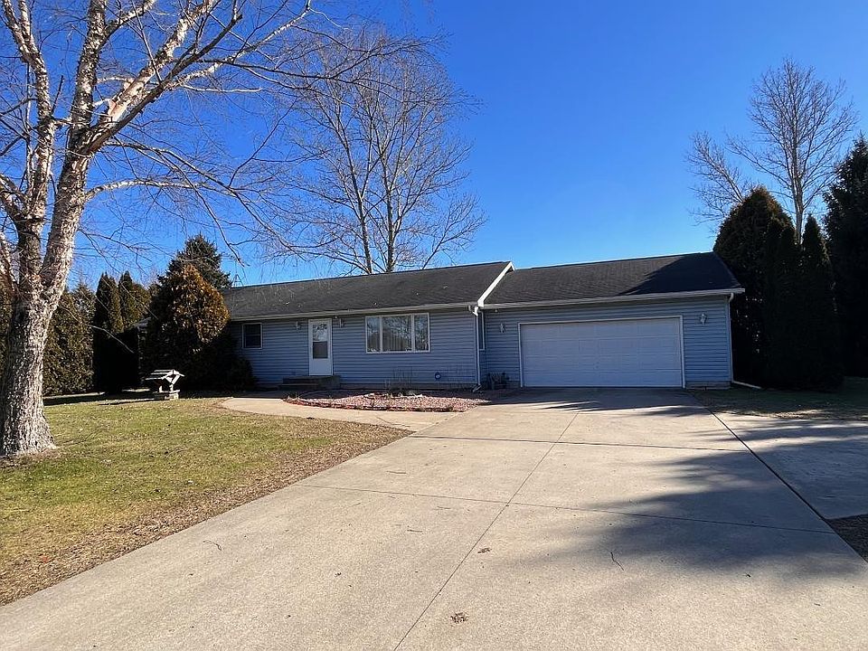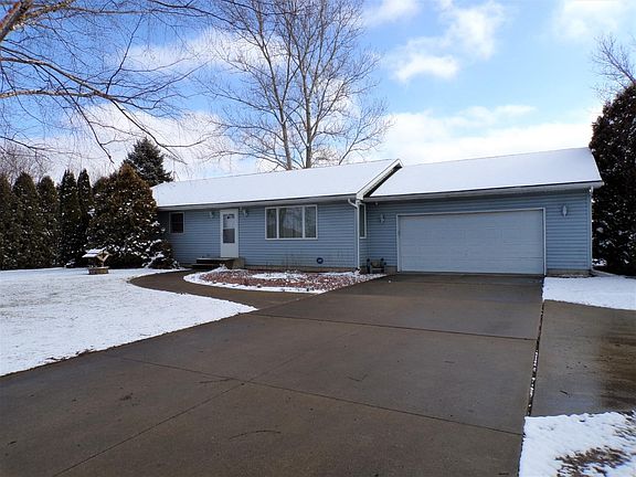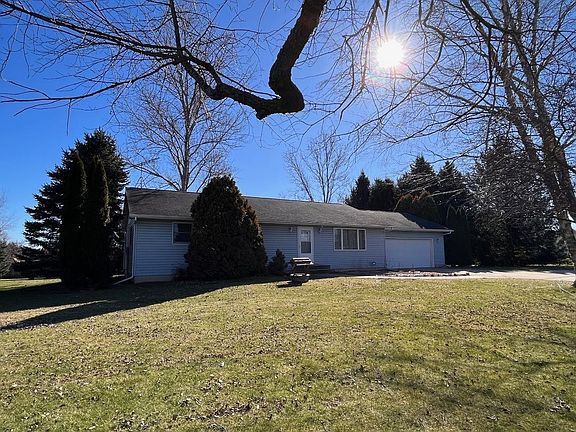 A great layout in this ranch home in Rolling Prairie! Large Livingroom with allot of natural light, with open concept dining area and kitchen. 2 nice sized bedrooms and 2 full baths plus a 1/2 bath in the garage. Main floor laundry for added convenience. The basement is dry and ready for you to finish. Large 2 car garage is attached. The boundary stakes have been marked for this .64 ac lot. New Prairie school district. Wheel chair ramp to entry from garage. Sold as is
