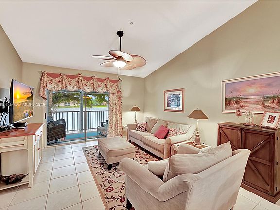 This immaculate 3-bedroom, 2-bathroom second-floor Turnkey end unit is located in a sought-after gated North Naples community, offering one of the best lake views in Huntington Lakes. The community features a vibrant, active lifestyle with a 10,000 sq. ft. clubhouse, resort-style pool, fitness center, sauna, billiards room, ballroom, card room, tennis courts, and bocce courts. Perfect as a vacation getaway, this condo boasts vaulted ceilings, neutral tile flooring throughout, and a screened, tiled lanai with stunning views of the lake, fountain, and clubhouse. Recent upgrades include electric hurricane shutters, custom window treatments, ceiling fans, a storage closet, a covered carport, and an additional assigned parking space.