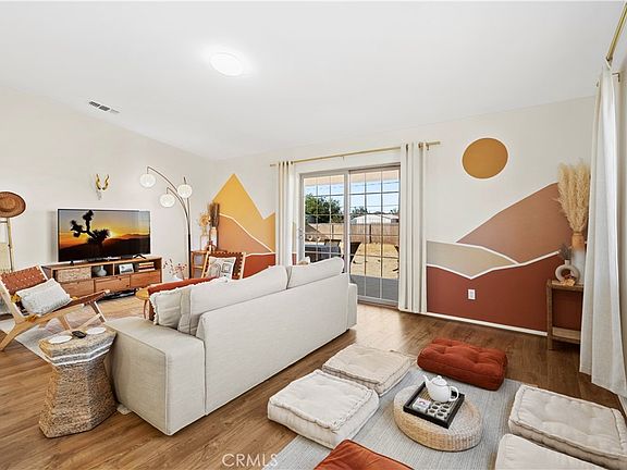 This beautifully remodeled, move-in ready, fully furnished 3-bedroom, 2-bathroom home is the perfect desert retreat, located just 15 minutes from Joshua Tree National Park. A highly successful Airbnb Superhost, this home grossed over $110,000 in the last three years, ranking in the top 5% of Joshua Tree rentals with over 200 five-star reviews. Equally suited for full-time living, this home offers a peaceful sanctuary with all the modern conveniences and close proximity to local amenities. To maximize energy savings, this home comes equipped with Tesla solar, central HVAC, and an evaporative swamp cooler to keep you comfortable and reduce your utility costs year-round. Newly added smart home technology features enhance security and convenience, making it easy to manage remotely or enjoy as a private sanctuary. Recent updates include hardwood laminate flooring, quartz countertops, stainless steel appliances, new bathroom vanities, and freshly painted cabinetry with stylish new hardware, blending modern design with desert charm. The vaulted ceilings and open concept floor plan give the home a very spacious feel, which is perfect for families, remote workers, or anyone seeking a private getaway with the option to entertain. Tucked away at the end of a cul-de-sac on a paved road, this home is nestled in a small, quiet neighborhood, offering peaceful tranquility and stunning natural beauty. From the private fenced yard, gaze East to see breathtaking views of Copper Mountain, expansive open spaces, and abundant walking trails that invite you to explore the desert by foot or bike. Imagine yourself relaxing by the campfire while watching the moonrise over Copper Mountain or stargazing into the Milky Way Galaxy. Whether you’re looking for a turnkey vacation rental, a weekend escape, or a peaceful full-time residence, this is a rare opportunity to own a piece of high desert paradise. Schedule a private showing today!