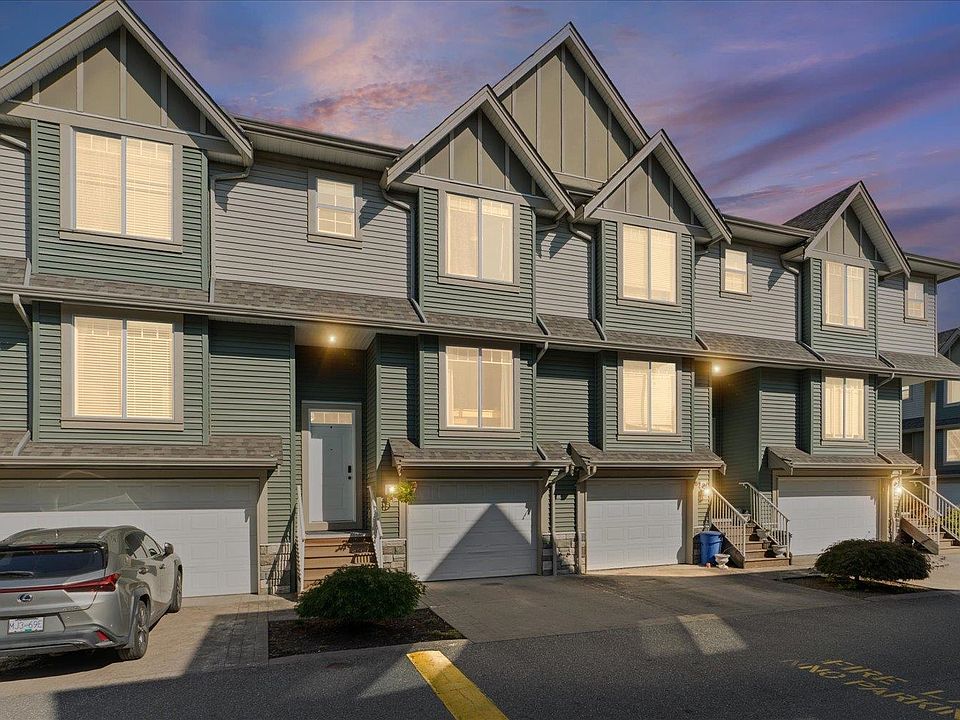 Fantastic location in the heart of Sardis in the desirable Village Green complex. This 3 bed, 3 bath townhome offers ideal family living with a park just steps away. Fresh paint, new carpets throughout, and a hot water tank replaced in 2024. The main floor boasts a bright open concept kitchen and dining area with updated cabinets, new countertops, stainless steel appliances, large island, walk-in pantry, and access to an 11'x7' sundeck. Powder room located on the main floor, plus a spacious living room with cozy fireplace. Upstairs you'll find 3 bedrooms, including a generous primary with walk-in closet and ensuite. Downstairs offers a laundry room and a bonus large flex room! This home also features a single-car garage, a fully fenced backyard with covered patio and garden area.