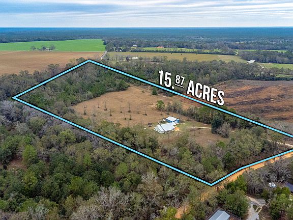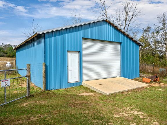 Country living at it's finest! Built in 2019, this 3 bedroom 2 bathroom home on 15.87 acres is ready for you to make it your own. Covered front and rear porches are perfect for hanging out, grilling, and relaxing. There is a 30x40 shop with full power perfect for your boat or tractor. Inside you will find luxury vinyl plank flooring, recessed lighting, granite countertops, and barn doors throughout. The open floor plan features a spacious kitchen w/ a large breakfast bar with ample seating, beautiful cabinetry and an adjacent dining area. To the right of the kitchen, you will find a separate countertop area with custom shelving and additional cabinetry. The flex room makes for the perfect office. Master suite offers a trey ceiling, two separate walk in closets, and French doors leading to the back porch. Master bath features a tiled walk in shower with a bench, soaking tub and dual vanities. Additional 2 bedrooms and additional bathroom are located on the opposite side of the home, just off of the kitchen. The spacious mud room offers a washer and dryer hook up, a sink, additional cabinetry and plenty of room for an extra refrigerator as well as lots of storage space.