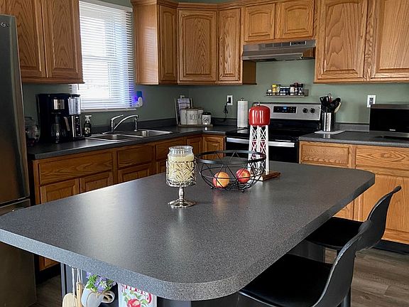 Very nice 2 bedroom, 2 bath home with open floor plan. Kitchen with nice cabinets, newer appliances and convenient island with lots of storage. The spacious living room and dining area offer plenty of natural light and sliding doors for access to the side deck and backyard. The owner suite has its own private bath and large closet. There is an additional bedroom at the end of the hall and another full bath serves the main living area. A dedicated laundry/utility room features a closet and cabinets for storage and a side door with outside access. New flooring throughout and new electric furnace installed in 2024. This property includes an additional 41 x 135 city lot!