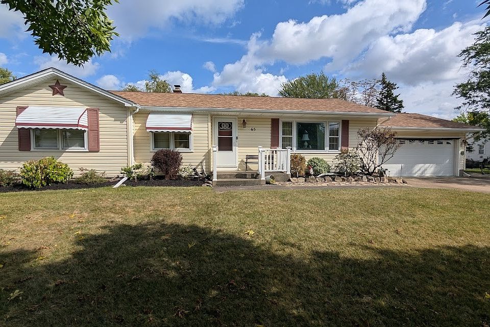 Welcome home to the beautiful three bedroom 1 and 1/2 bath vinyl sided ranch with attached 2.5 car garage on large park like lot. Modern kitchen offers plenty of cabinetry, solid surface counters and gleaming hardwood floors. Extra large living room is freshly painted with new carpeting. The family room with vaulted ceilings and gas fireplace will be the perfect spot for game night, family get togethers or just relaxing. Sliding door leads out to beautiful yard and patio. Three nice sized bedrooms with plenty of closet space. Full - poured concrete basement, central air, circuit breakers, architectural roof (@4yrs old). This home will not disappoint.
