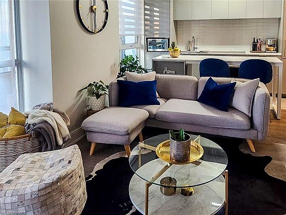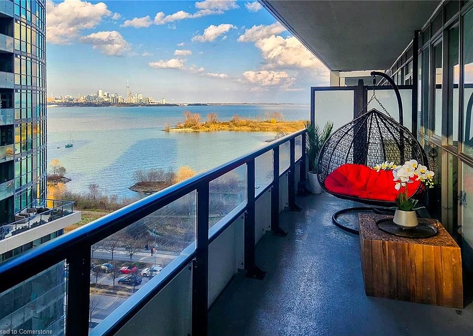 Experience elevated living with panoramic views of the lake and Toronto escarpment in this beautifully designed 2-bedroom, 2-bathroom suite. Each bedroom features its own ensuite, while the open-concept layout is enhanced by premium laminate flooring and a modern European-style kitchen with built-in appliances, cooktop, vented hood, and a functional island with seating. Wake up to breathtaking views of the CN Tower and city skyline from the primary bedroom. Step out onto the generous patio, perfect for relaxing or entertaining. Ideally located just steps to the scenic waterfront pedestrian and bike trail, and close to local restaurants, cafés, and shops. Exceptional building amenities include concierge/security, underground parking, indoor pool, fully equipped gym with yoga studio, rentable guest suites, ample visitor parking, and a convenient car wash station located on P5!