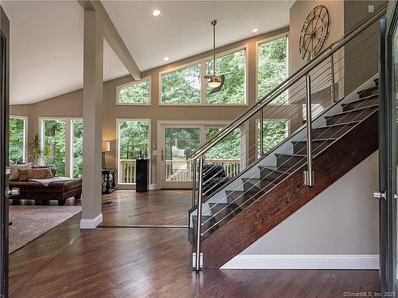 Chic updated contemporary enhanced by stylish design elements throughout the bright open floor plan Owners & guests are greeted by an amazing great room w/soaring ceilings & 2 story windows w/door to deck to take full advantage of the private backyard setting. Rich hardwood continues into family room w/sleek frpl & private deck for owners to relax or gather w/friends,but everyone always gathers in the kitchen-especially one as fabulous as this Gorgeous remodeled kit w/lrg islnd w/gas cooktop & brkfst bar,euro style hood,ss farmhouse sink & custom modern cabinetry including wet bar leading into well sized dining rm. Sophisticated modern design is heightened by cable railing staircase to upper level w/wide skylit hallway seemlessly connecting updated bedrooms & baths. A stunning remodeled spa bath featuring on trend vanities,soaking tub w/sky views, & lg rainfall shower provides perfect start or luxurious end to the day in the owners suite w/gleaming hrdwd & walk in w/exceptional built ins. Three addtl updated bdms w/new flooring & shaker style closet doors share attractive remodeled hall bath. Plenty of options to gather,exercise or play in the sunny lower level w/convenient walk out to patio tailored for easy living & entertaining w/lg built in grill area,beautiful sitting walls & peaceful professionally landscaped grounds to fringe your backyard oasis.New casement windows,central AC,LED lighting interior/exterior, blinds, & security system Modern updates-Move in ready