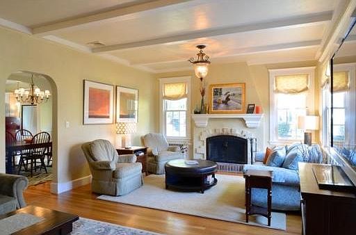 Nicely located Unique Mediteranean-style, sun-lit Home within sight and sound of the ocean! 3-4 Bedroom, 2.5 bath 1930s home with high ceilings, hardwood floors, large newer windows, fireplace, and coffered ceiling blended with granite and stainless steel open kitchen and baths finished with excellent materials and top quality! The Fully finished lower level includes a family room and 4th bedroom with walk-out to beautifully landscaped yard. Great play space on this quiet dead-end street moments from the beach.