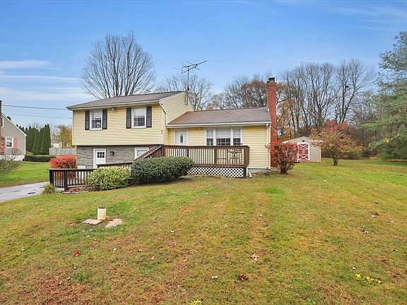 Welcome to 65 Bolton Branch! Lovingly cared for by the same family for more than five decades, this split-level home is ready for its next chapter. Step inside to a bright and inviting living room, where a large picture window fills the space with natural light and a cozy fireplace sets the tone for chilly New England evenings. The eat-in kitchen is perfect for casual meals and everyday gatherings. Just a few steps up, you'll find two comfortable bedrooms and a full bath. The spacious primary bedroom offers double closets and has hardwood floors under the carpeting. Second upstairs bedroom has beautiful hardwood flooring as well. The newly finished lower level adds incredible flexibility, with its own private entry, den/office, family room, and full bath-ideal for guests, extended family, or possible in-law suite. Laundry is conveniently located on this level as well. Outside, enjoy quiet afternoons on the front deck or host family and friends on the back deck overlooking the level yard. With plenty of room for gardens, this property is as welcoming outdoors as it is inside. House is generator ready. Storage shed for all your yard tools and toys! 65 Bolton Branch blends timeless character with modern updates, offering space, warmth, and versatility. Come see for yourself, this could be your own Home for the Holidays!!